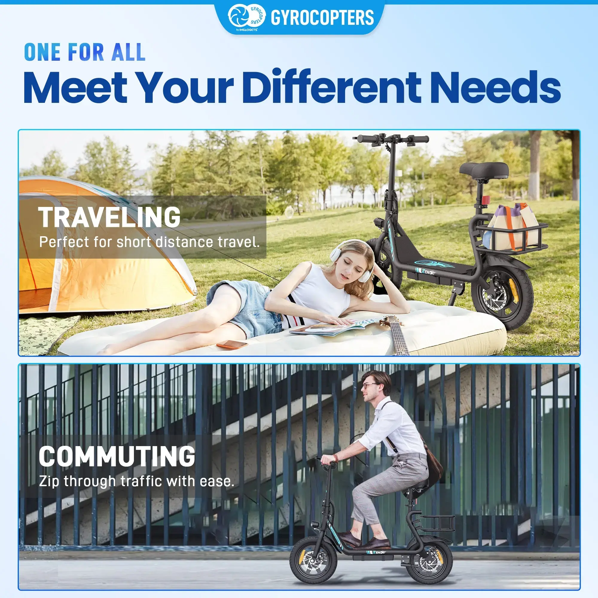 Gyrocopters Zeno Electric Scooter | 500W Peak Motor | 25km/h Speed | UL2272 Safety | 25km Range | Shock-Absorbing Seat | GPS | Cruise Control | Quick Folding Design | Large basket