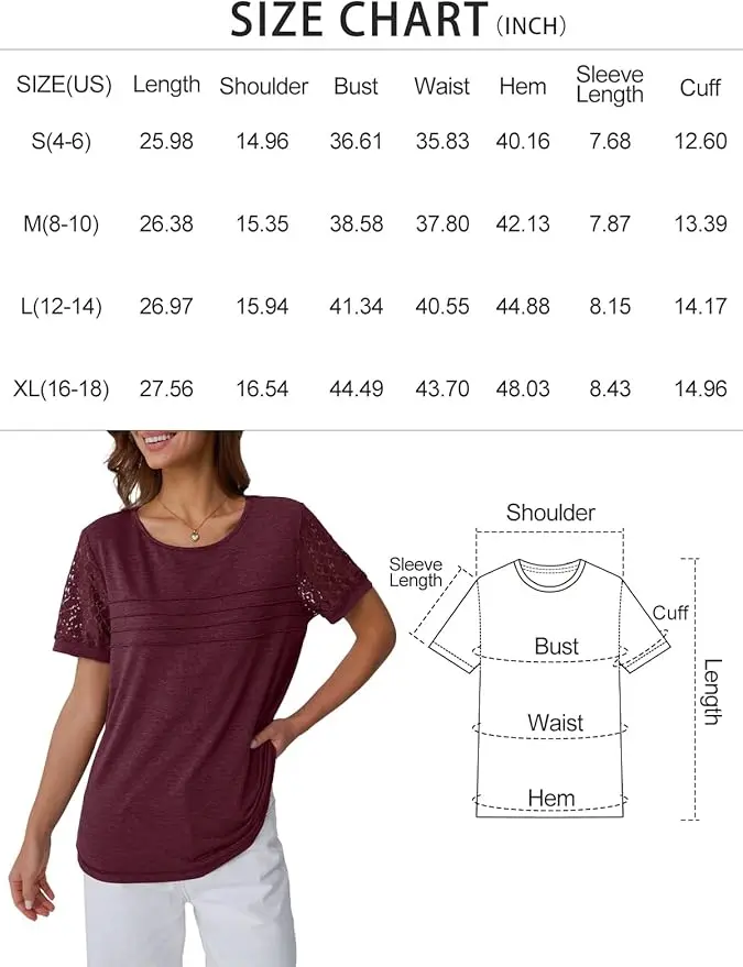 Features: Exquisite lace design, crewneck, short sleeves, loose fit, business casual T-shirt, short sleeve summer outfits for women 2026. These women's summer tops are suitable for almost all occasions and friendly to all body types.