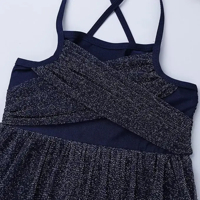 - Ruffled glittery mesh skirt is attached around the elastic waist. Beautiful dancewear for your girl