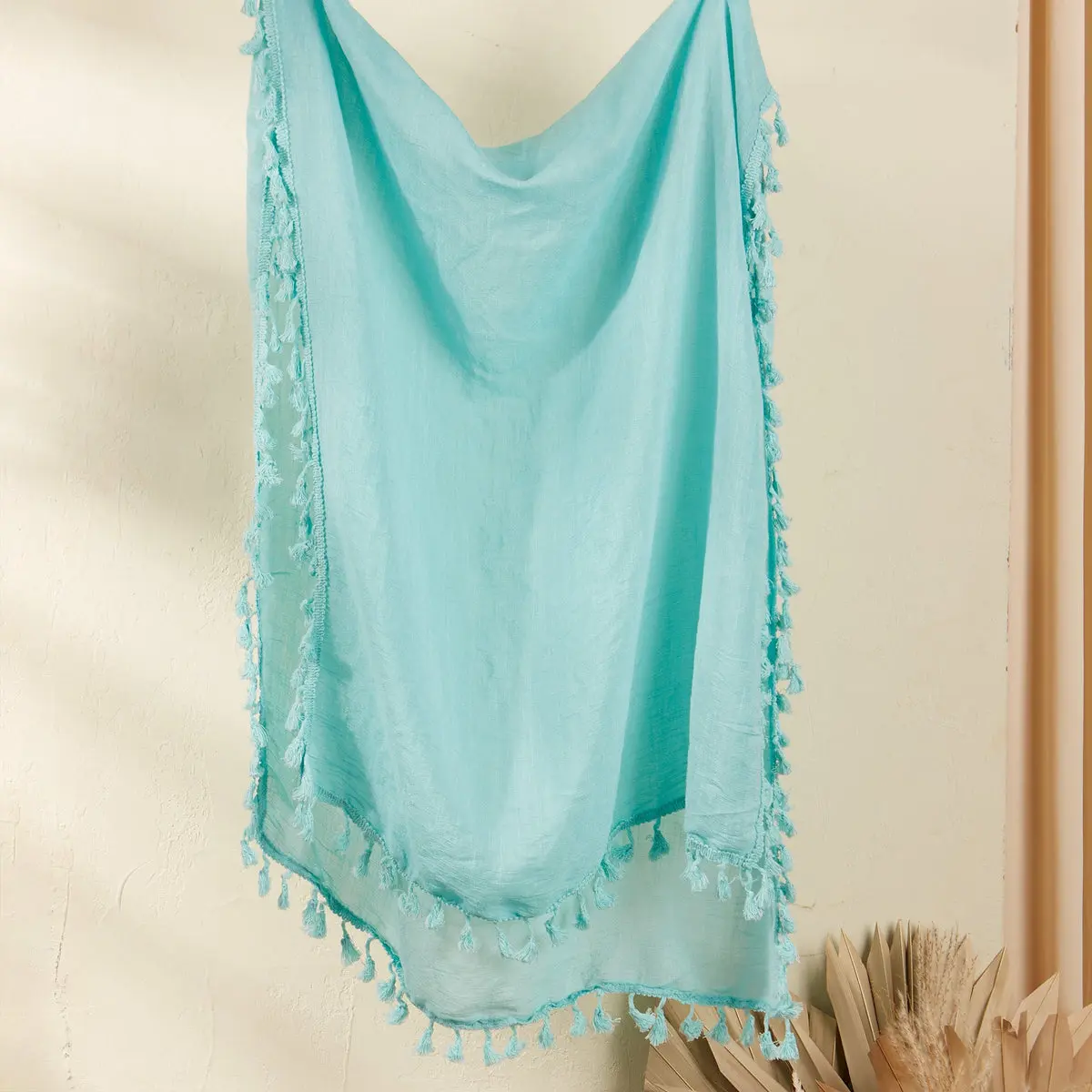 This tasseled Beach Sarong, measures 51x23 inches and is crafted from lightweight polyester fabric, the perfect for warm weather. Versatile in design, this sarong is designed not only to be worn as a stylish swimsuit cover-up at the beach but also as a skirt for any outing. Care is easy, just hand wash in cold water, line dry, and iron on low as needed. Adorned with decorative tassels, this sarong will elevate your warm weather wardrobe with this chic and easy-to-care-for accessory.