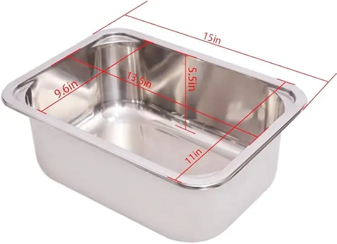 【Rv Kitchen Sink Dimension】Exterior Dimension: 15” x 11” x 5.5”. Interior: 13.6” x 9.6” x 5.4”. please make sure it will fit your kitchen counter before purchase.