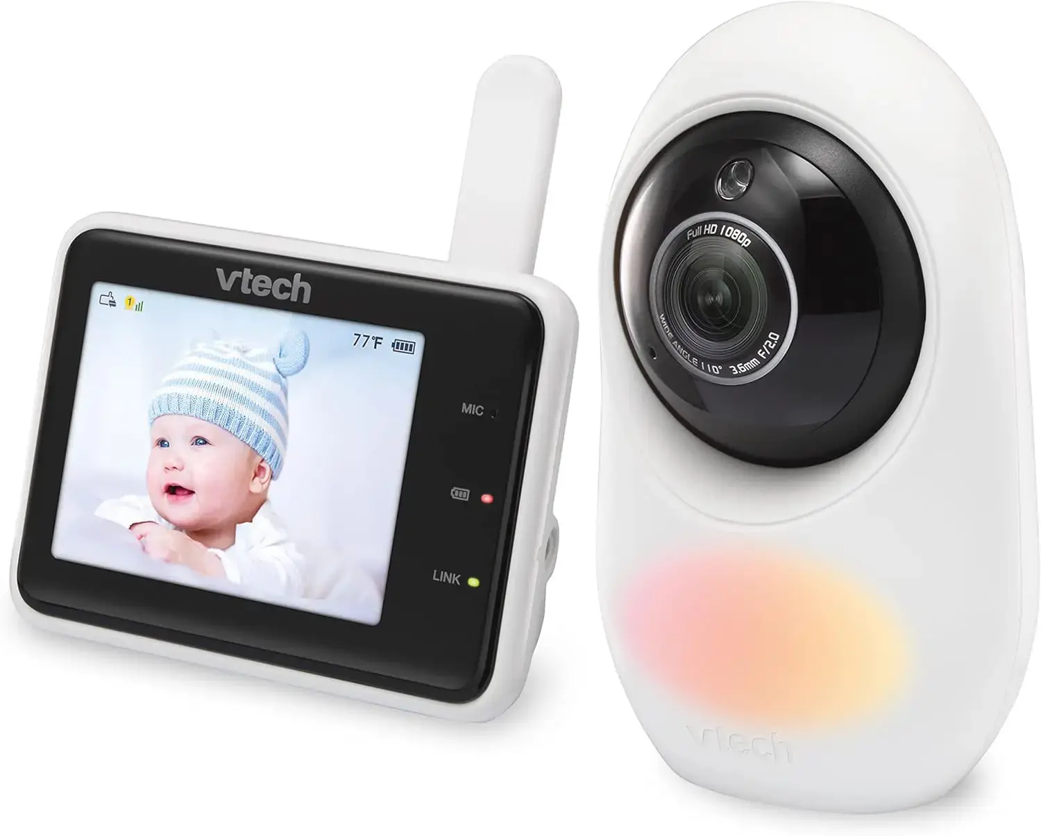VTech 1080p Smart WiFi Remote Access Video Baby Monitor with Super-slim 2.8” Display, Night Light, RM2751 (White)