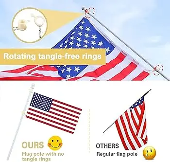 - Tangle-Free Design: 360° free rotating anti-wrap rings,allow your flags fly freely in the direction of the wind, no wrapping around the flagpole