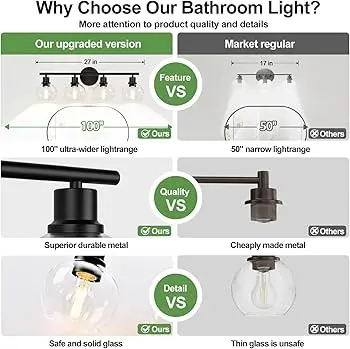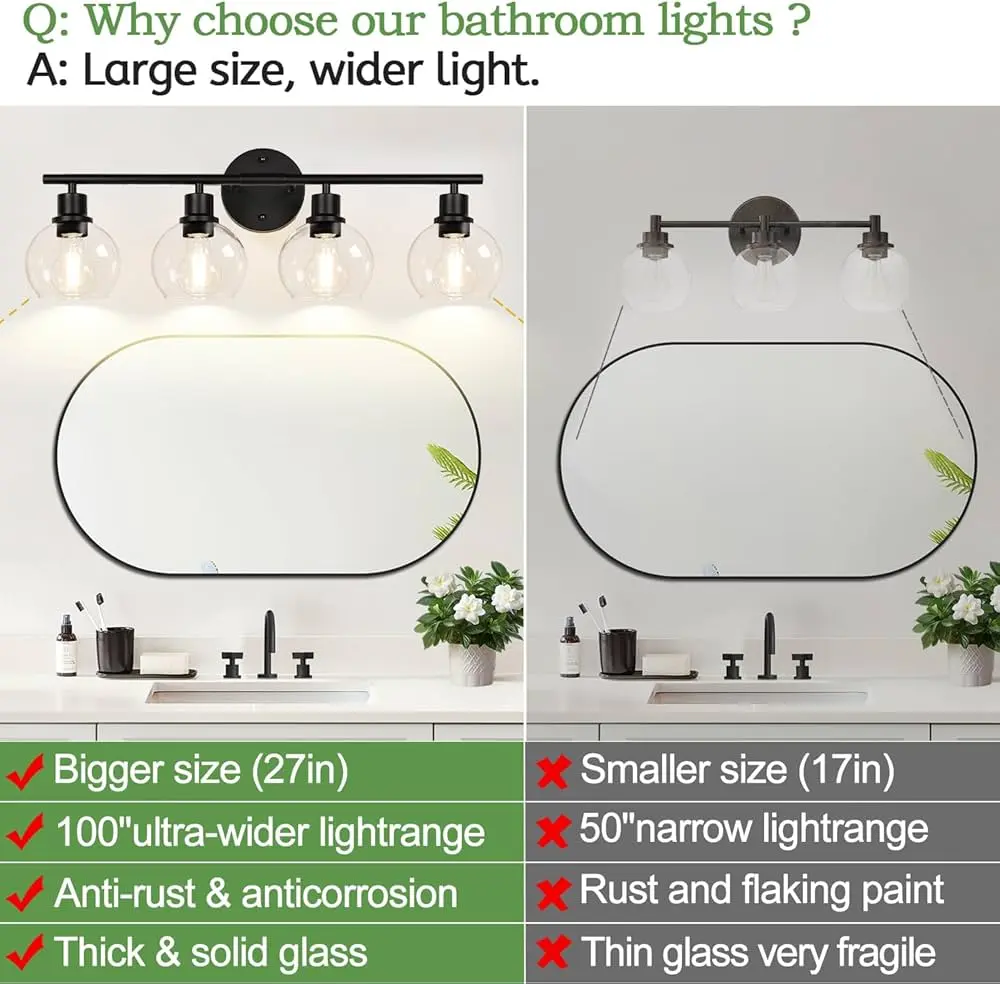 Black Bathroom Lights Over Mirror with Clear Glass Globe, Vanity Lights for Bathroom Kitchen Living Room Hallway Cabinet Quart