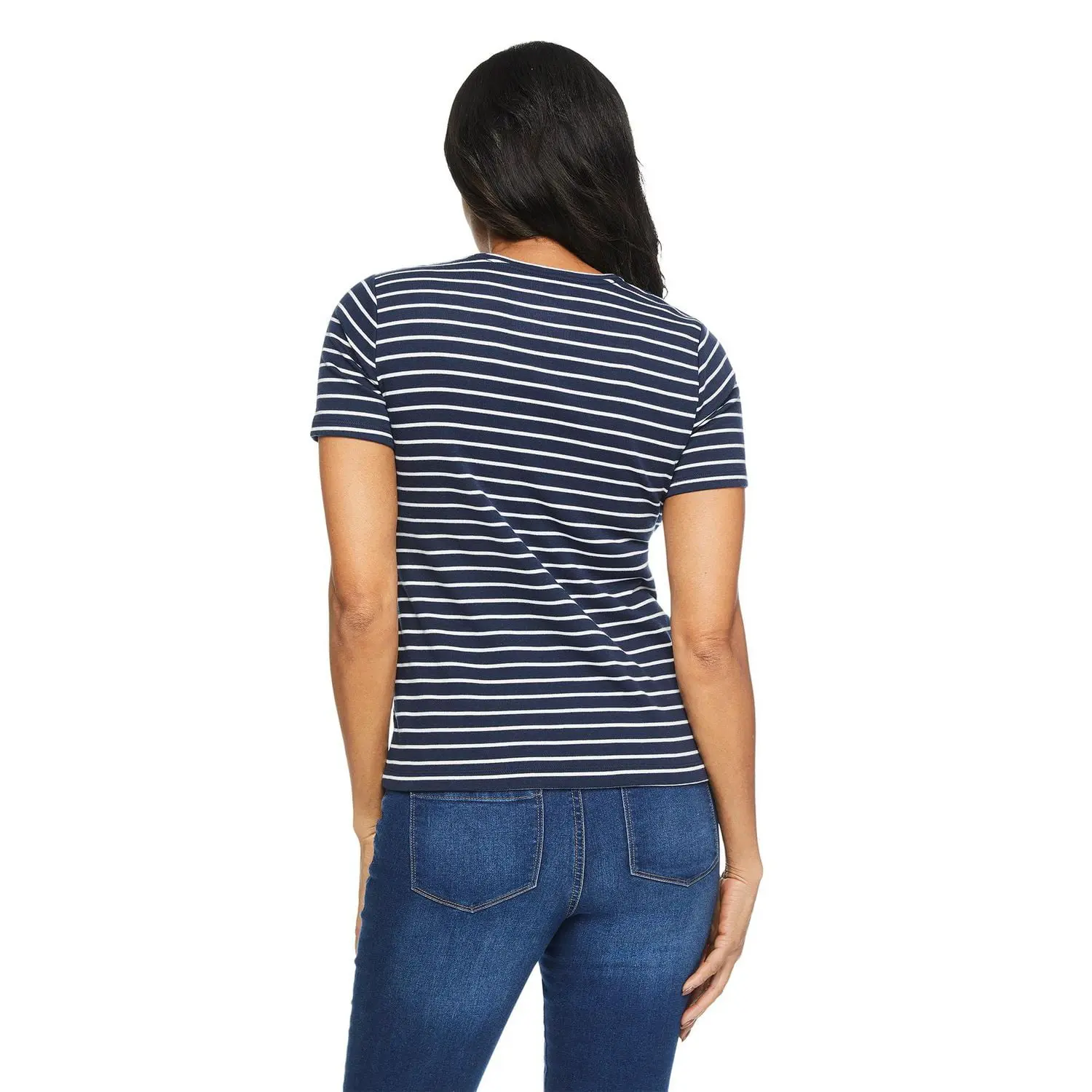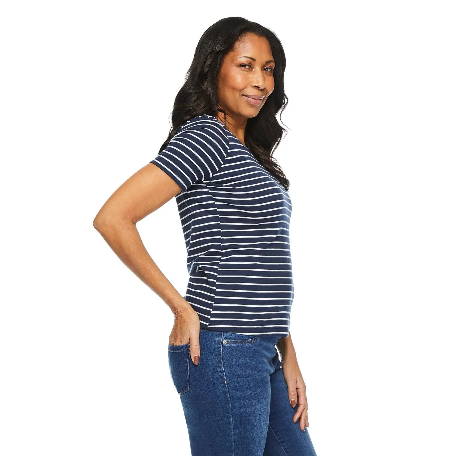 Perfect for lounging around the house or running errands, Iyla women's interlock top is a must-have for your wardrobe. Made with interlock knit, it's soft and comfy for all-day wear. The top features a classic crew neckline and short sleeves for a simple yet stylish look. With a straight hem, it’s perfect to pair with your favourite jeans or leggings for an effortlessly cool outfit.
