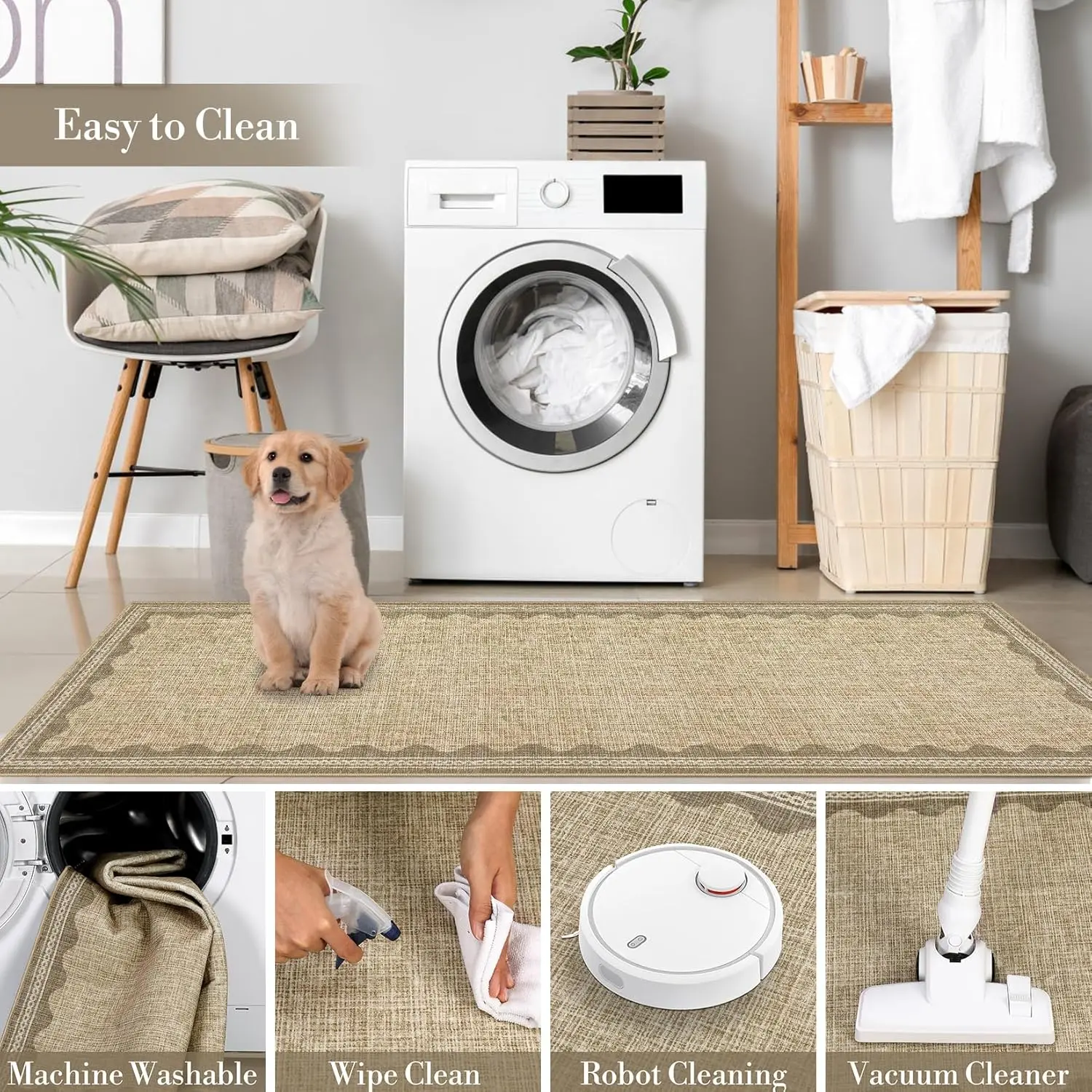 - 【Timeless Unique Scalloped Design】It is a gorgeous washable and foldable rug featuring a minimal neutral cream tone with a scalloped edge design. A timeless, modern, and unique design to add to any space.Due to the nature of printing, the 4x6 rugs design may vary slightly from the product photos, making each scalloped rug unique.