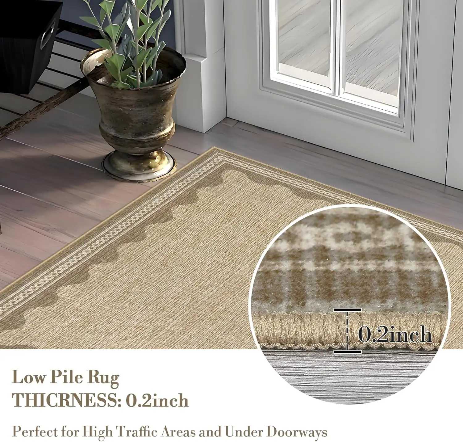 CAREMEE Scalloped Rug 4x6 Rugs for Entryway, Small Area Rugs Tan Rug for Bedroom, 4x6 Washable Rugs for Living Room,