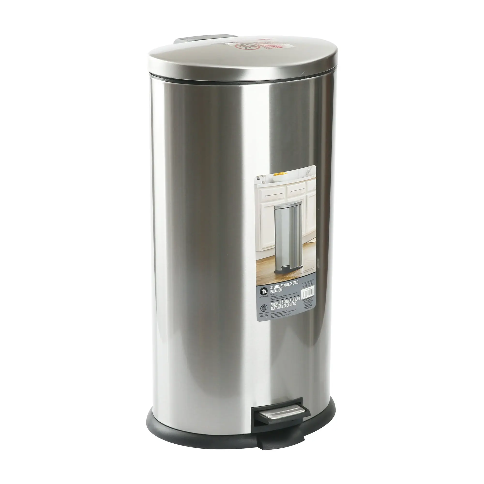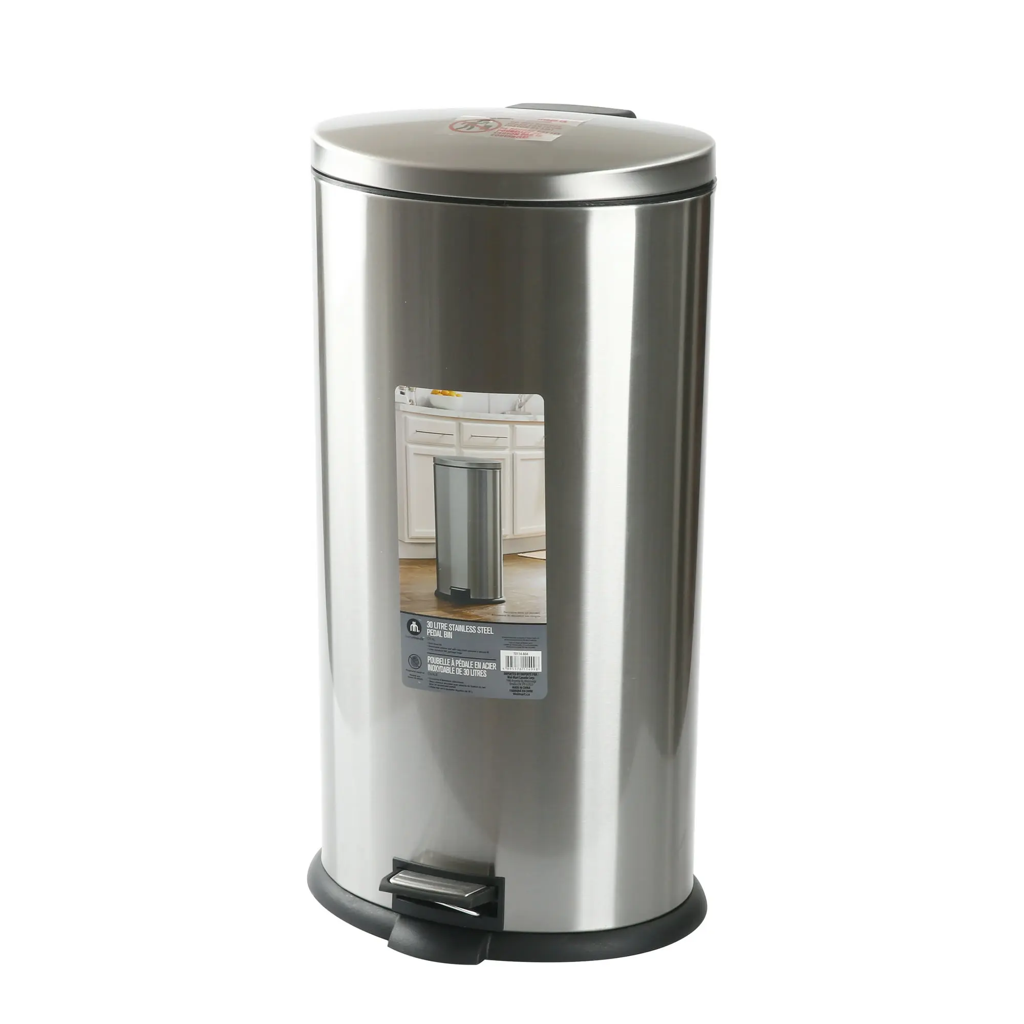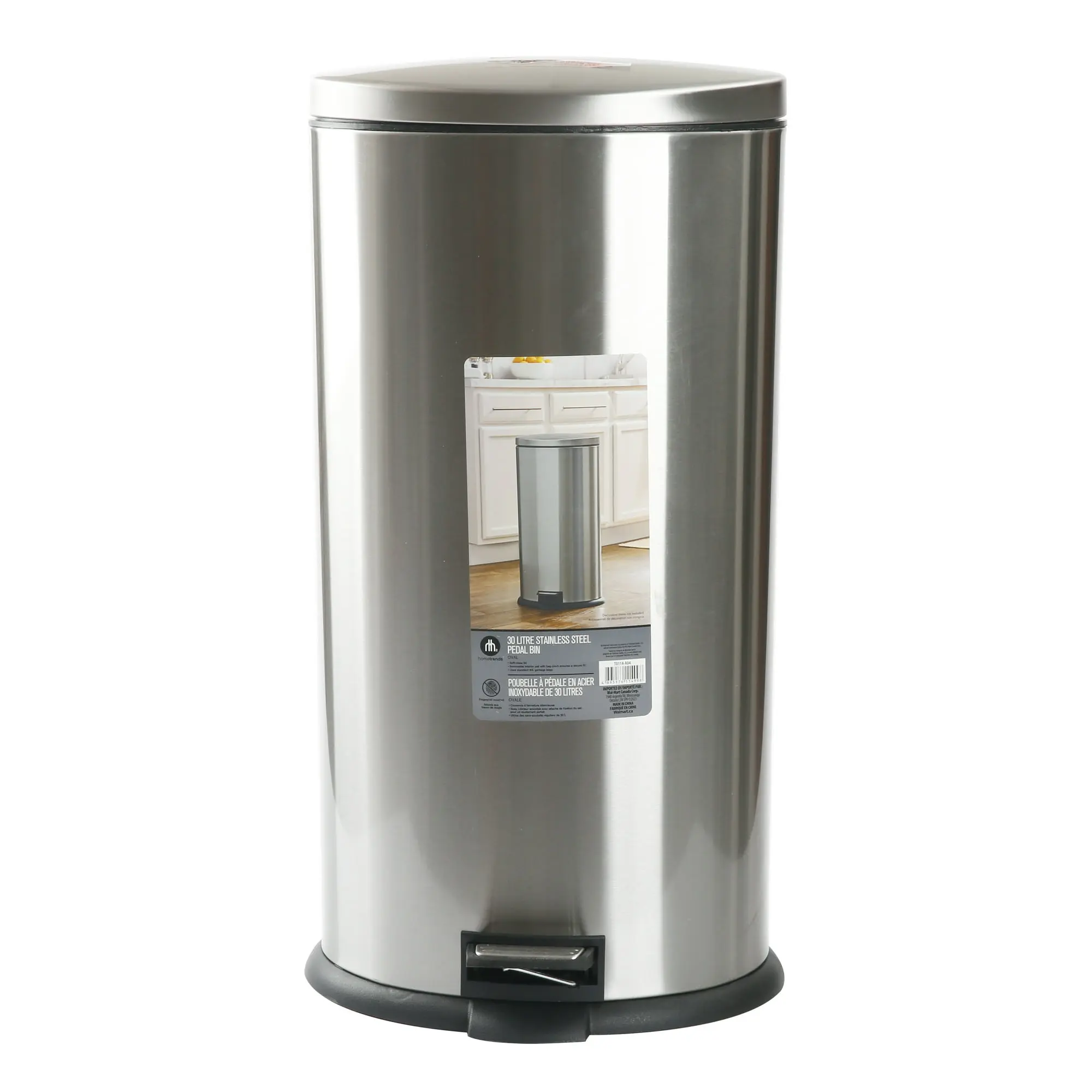 Hometrends 30 Litre Stainless Steel Pedal Waste Bin, Oval